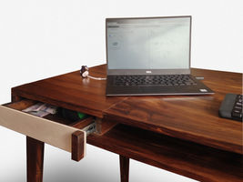 Desde el concepto hasta la elaboración, cada detalle ha sido cuidadosamente pensado y ejecutado. La versatilidad es la clave, con una sección removible que sirve como tablero borrable y un diseño modular que permite la configuración en forma de L o como escritorios separados. La funcionalidad se destaca con cajones especializados para cables, espacio empotrado para libros y otros elementos, así como un cajón convencional en la parte inferior. Estos escritorios no solo son muebles, sino manifestaciones de diseño inteligente y versatilidad para adaptarse a cualquier espacio y necesidad
